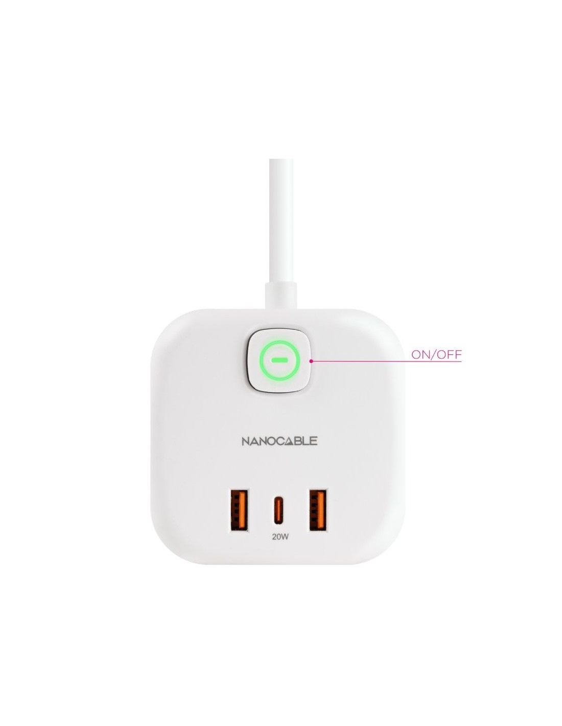 REGLETA 3 TOMAS NANO CABLE 2 USB, 1 USB TYPE C 1.4M BLANCA PN: 10.37.0011 EAN: 8433281016675